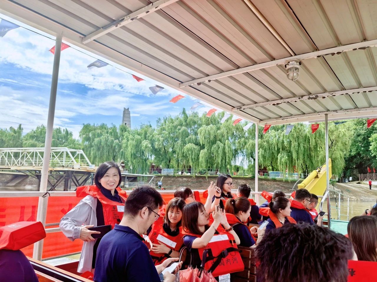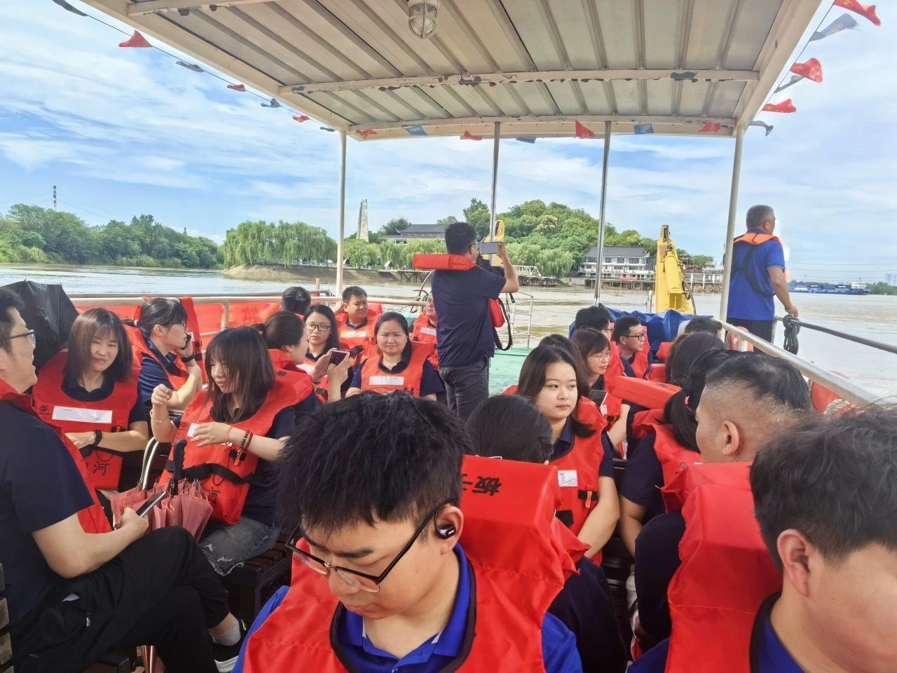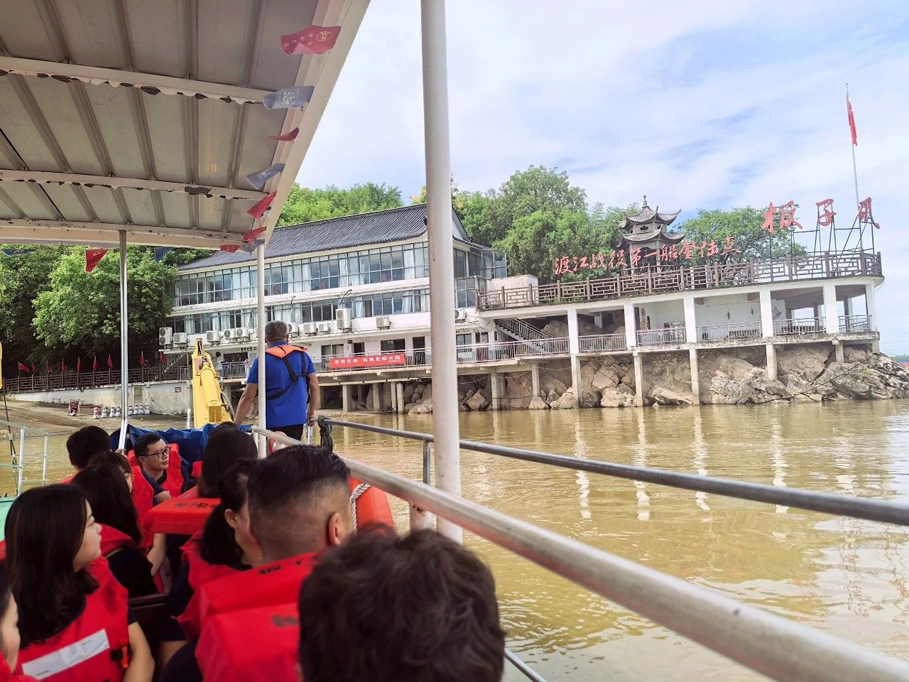 上午9時(shí),全體黨員身著廠服、佩戴黨徽,在游船碼頭整齊列隊(duì)登船前往渡江戰(zhàn)役第一船登陸點(diǎn)——板子磯。江風(fēng)獵獵,碧波蕩漾,黨員們遙望這片見(jiàn)證過(guò)歷史性時(shí)刻的江面,仿佛置身于76年前百萬(wàn)雄師橫渡長(zhǎng)江的壯闊場(chǎng)景中。