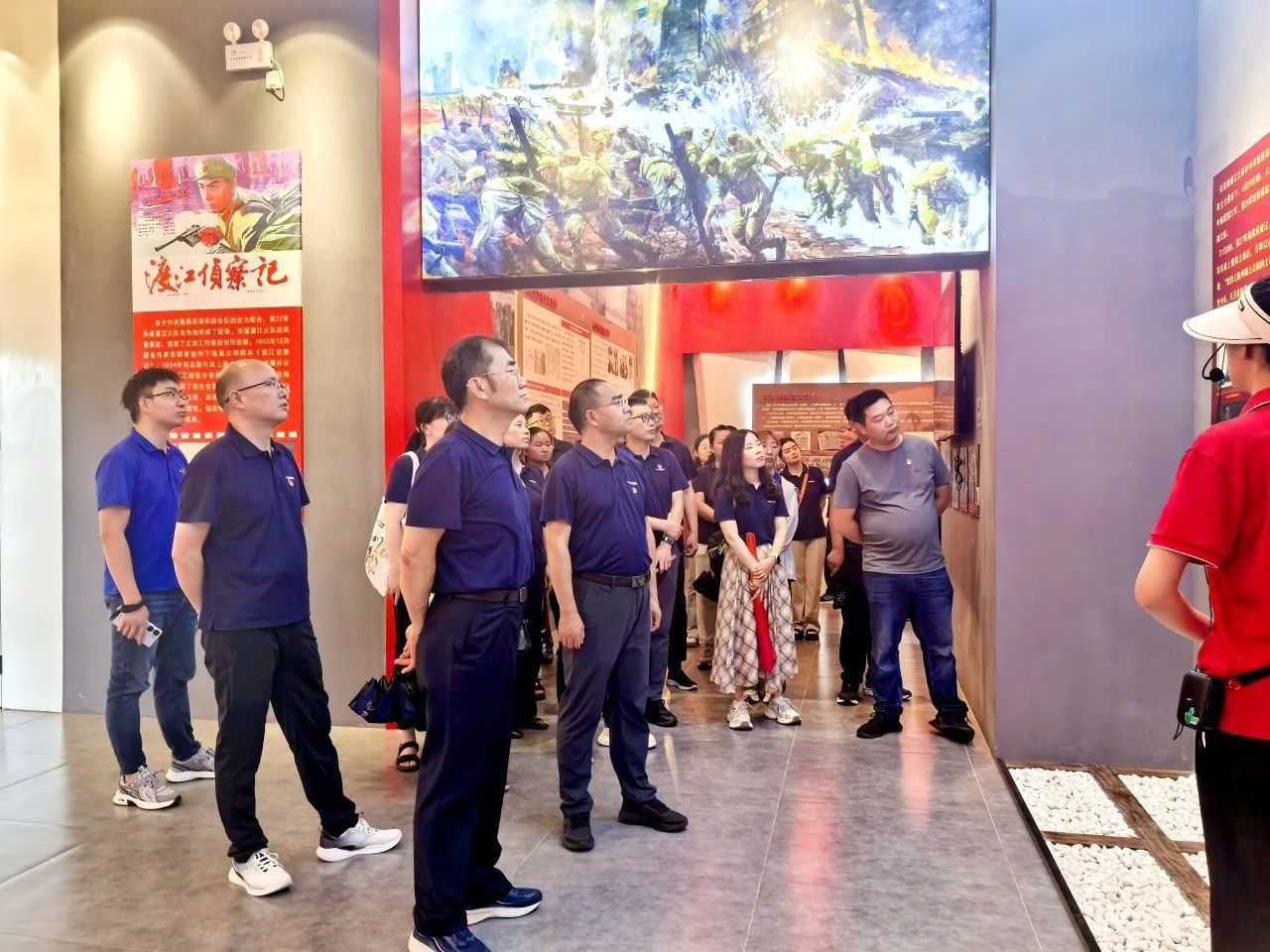 隨后,黨員們集體參觀了渡江第一船紀(jì)念館。館內(nèi)陳列的歷史照片、實(shí)物展品和多媒體影像,生動(dòng)再現(xiàn)了渡江戰(zhàn)役的壯闊場(chǎng)景。在“第一船”起航地遺址前,黨員們駐足凝視,仿佛穿越時(shí)空,感受到革命先輩“百萬(wàn)雄師過(guò)大江”的磅礴氣勢(shì)。黨員們紛紛表示,此次活動(dòng)既是一次深刻的黨性教育,更是一堂生動(dòng)的實(shí)踐課,要將革命精神轉(zhuǎn)化為干事創(chuàng)業(yè)的動(dòng)力。