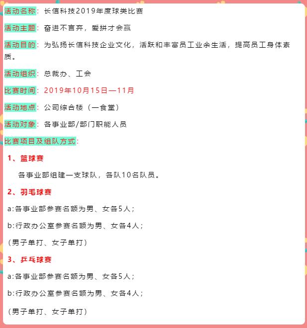 長信科技2019年度球類比賽報名開始