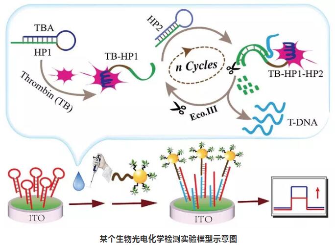 在生物檢測領域,光電化學(Photoelectrochemical, PEC)分析是近年來發(fā)展起來的一種基于物質(zhì)的光電轉(zhuǎn)換特性而進行檢測的新型分析方法,它具有靈敏度高、設備簡單、易于微型化等特點。而PEC分析的性能,如靈敏度、穩(wěn)定性、重現(xiàn)性等,最終取決于所采用光電材料的性能,即光電材料的設計合成成為關鍵,這也是未來光電行業(yè)的重要方向之一。